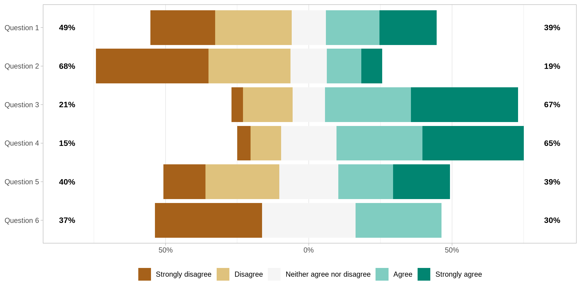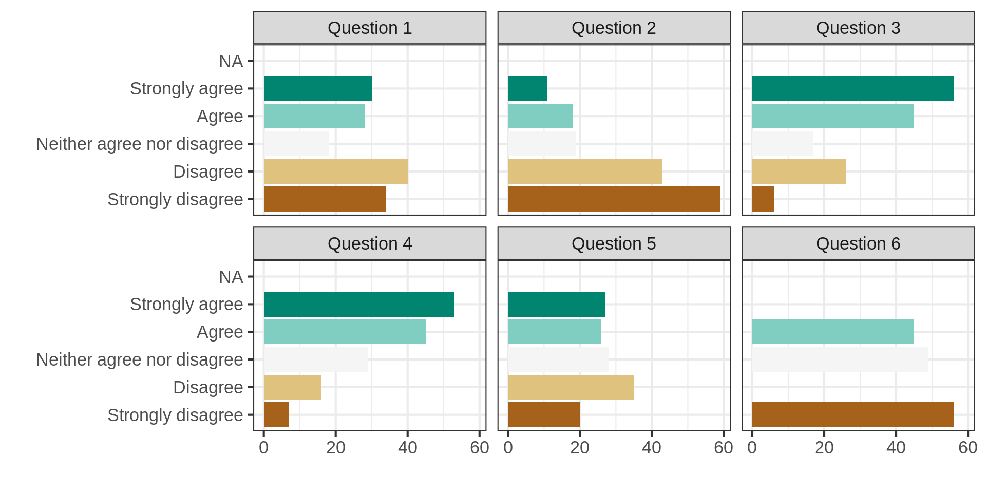 $ `Question 6` <fct> Strongly disagree, Strongly disagree, Agree, Agree, Stron…