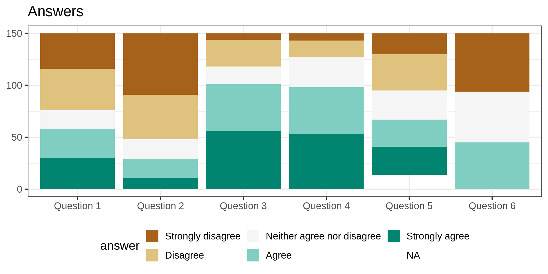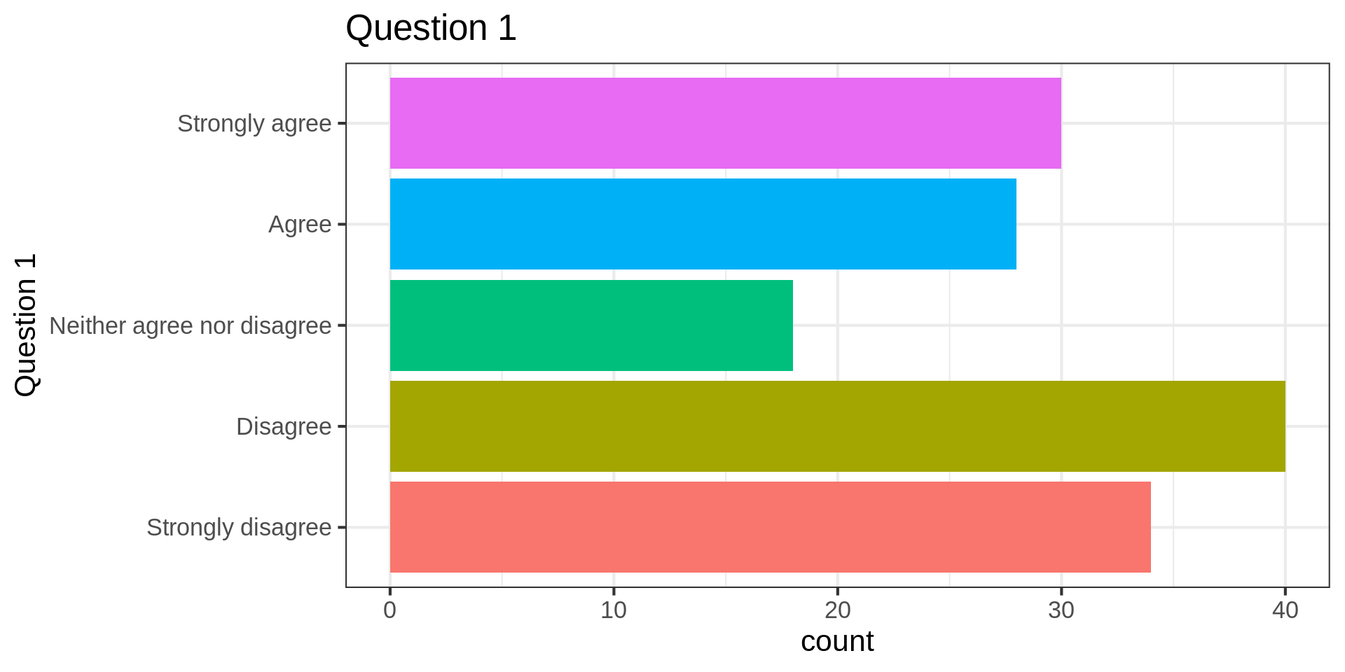 $ `Question 4` <fct> Disagree, Strongly agree, Neither agree nor disagree, Nei…