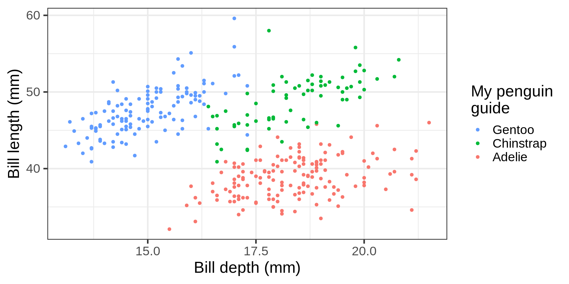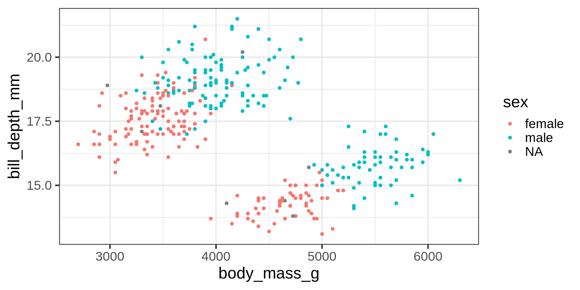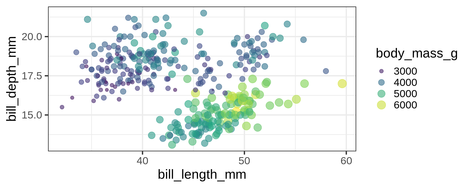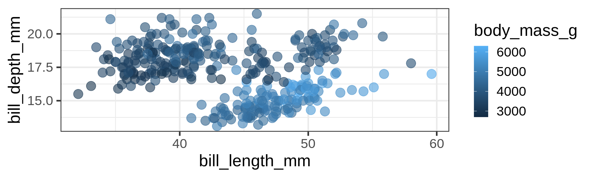 ggplot(aes(x = bill_length_mm, y = bill_depth_mm,